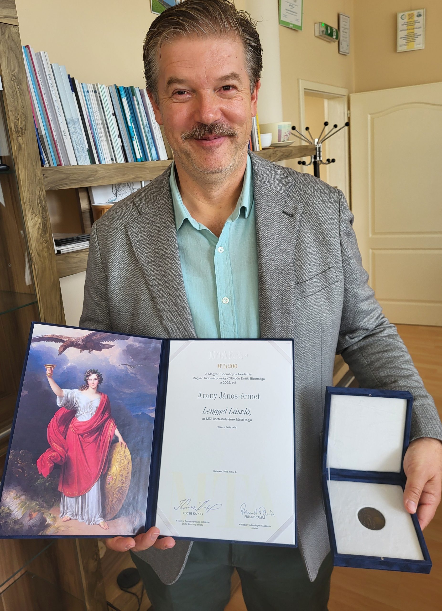 Dr. Lengyel László tudományos és közéleti tevékenységéért 2025. 05. 08-án Arany János-érmet vett át Freund Tamástól, az MTA elnökétől Budapesten. A VMAT minden évben itthon is megünnepli azokat a hazai kutatókat, akiket a Magyar Tudományos Akadémia az Arany János díjazási rendszerben kitüntetett.