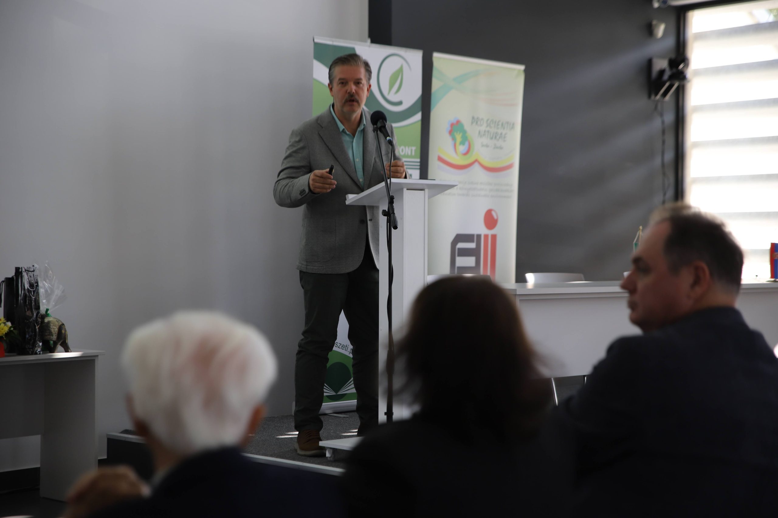 A változások követői, a fejlődés követei – napjaink agrárfejlesztéseinek bemutatása c. előadásában dr. Lengyel László a vajdasági agrárfejlesztéseket lehetővé tevő intézményi háttér jelentőségét emelte ki: a Pro Scientia Naturae Alapítványt, a Dr. Berényi János Agrárinnovációs Központot, a cégeket és a konzorciumokat. Másrészt a forráskutatásra mutatott rá, amelyek esetében a céges és az egyetemi megbízások, valamint a pályázati források képeznek lehetőséget. A kutatásaik témakörei a megrendelők, a források függvényében alakulnak. A konzorciumban kutatott témák: új technológiák (Dróntechnológiák, CO2 trágyázás, forgatás nélküli művelésmódok, víztakarékos technológiák) alkalmazhatósága térségünkben. Végeznek tanyanyagfejlesztéseket (iskolakert program, Horticulture 4.0), Infrastruktúra és ágazati fejlesztést: Sagitta projekt, Greener Futre projekt. Önálló kutatásaik keretében jelen van a Bock Pincészet – szőlőmag-kutatás, az agrárdigitalizáció, a természeti erőforrások védelme, az agrárerdészet és a Vertikális Farm. Az agrárdigitalizáció felöleli a Precíziós gazdálkodás, a Big Data és az adatelemzés, a Dróntechnnológia, az Automatizált gépek és robotok, az Okos öntözési rendszerek, a Digitális növényvédelem, a Mesterséges intelligencia és gépi tanulás, a Blockchain a mezőgazdaságban, a Virtális és kiterjesztett valóság és a Fenntarthatóság és környezettudatos technológiák c. témákat. A természeti erőforrások védelme területén foglalkoznak a vízvédelemmel és vízgazdálkodással, az erdőgazdálkodással és az erdővédelemmel, a talajvédelemmel és a talajerózió elleni küzdelemmel, a biodiverzitás megőrzésével, a levegőminőség megőrzésével, az éghajlatváltozással, a megújuló energiaforrásokkal, a hulladékgazdálkodással és újrahasznosítással, a környezettudatos gazdasági fejlesztéssel, valamint a tudatosság és oktatás összefüggéseivel. A Pro Scientia Naturae Alapítvány tevékenységében jelen vannak a jövőt illető víziók is. Céljuk a megújult tanulási környezet tanulmányozása és fejlesztése, a klasszikus tudományos értékek és értékrend népszerűsítése, a gyakorlatban felhasználható és eladható új tudományos eredmények és fejlesztések megvalósítása, a stabil intézményes kapcsolatok és gyümölcsöző együttműködések kialakítása.